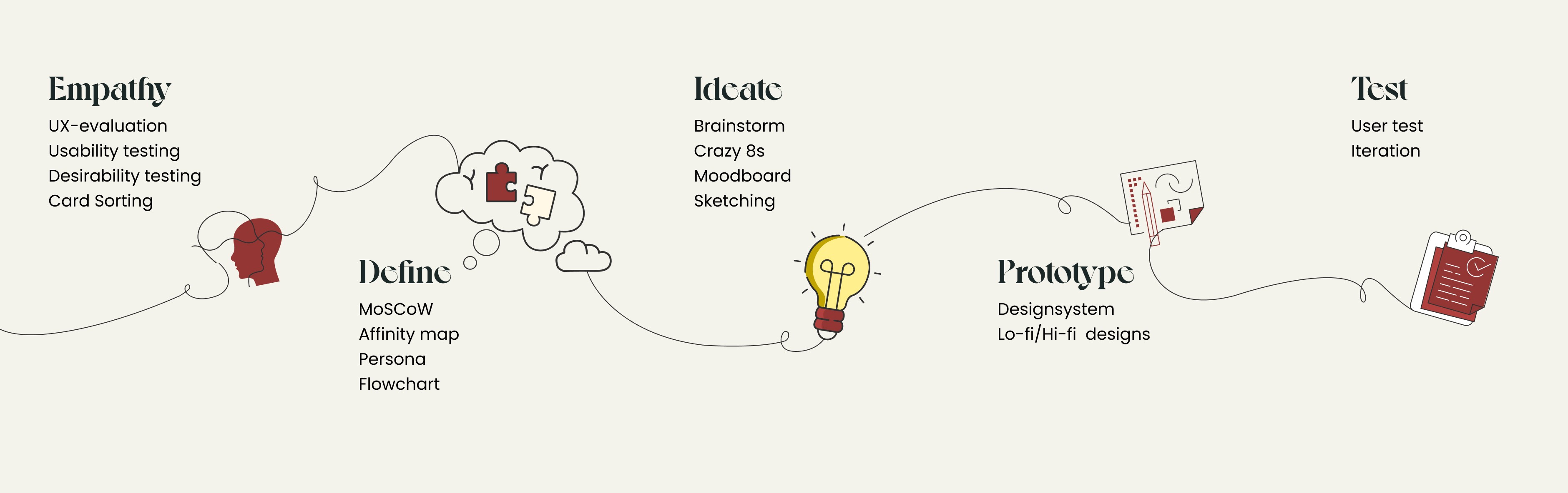 We created personas to better understand users and prioritized features using the MOSCOW method. To test the existing solution, we conducted user tests and observed task completion. We also used card sorting and flowcharts to improve website navigation and structure.