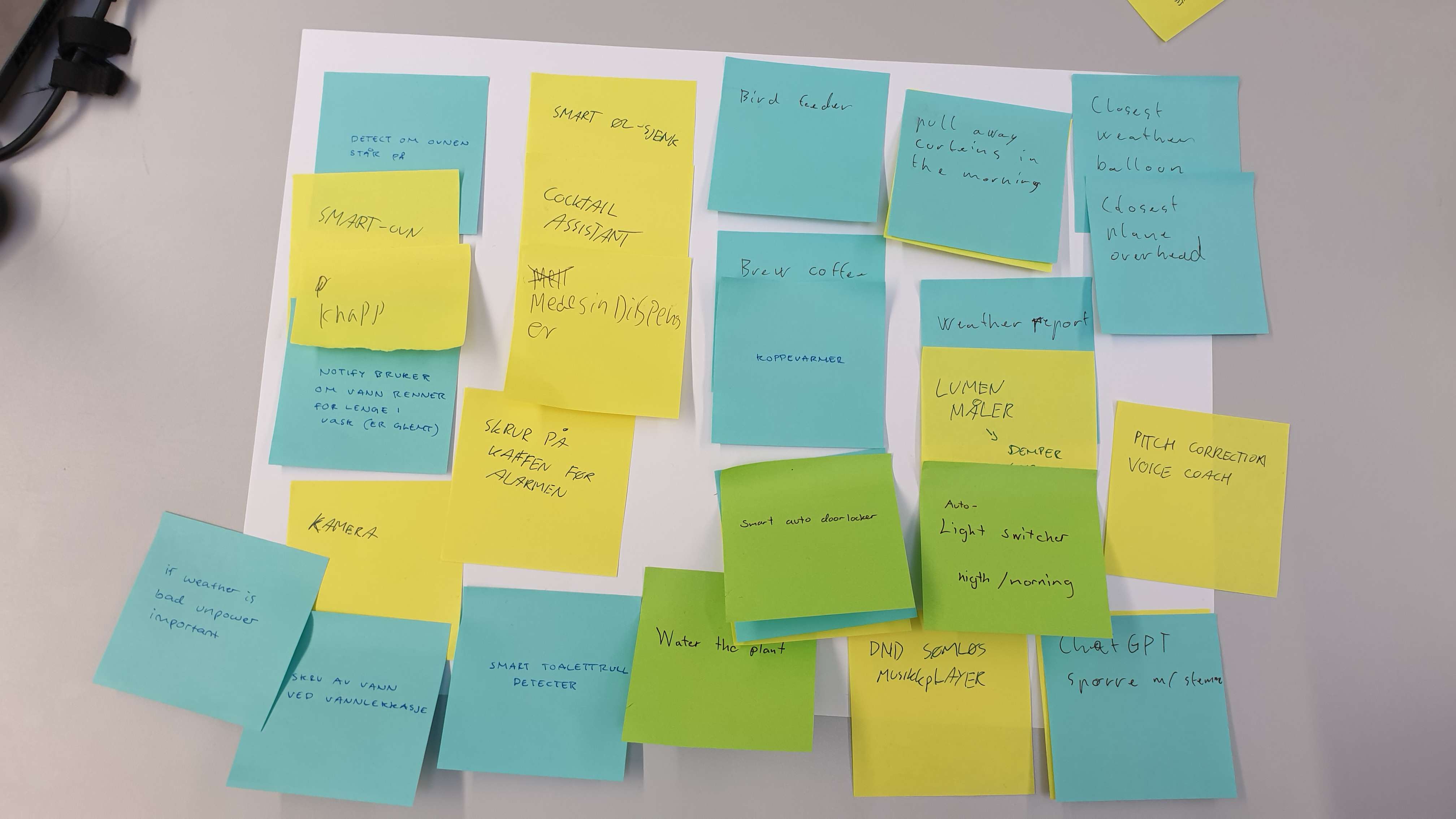 Before getting started, we each brainstormed project ideas. We did a fast Crazy 8 session, sketching on sticky notes. This let us be creative and gave us lots of choices.